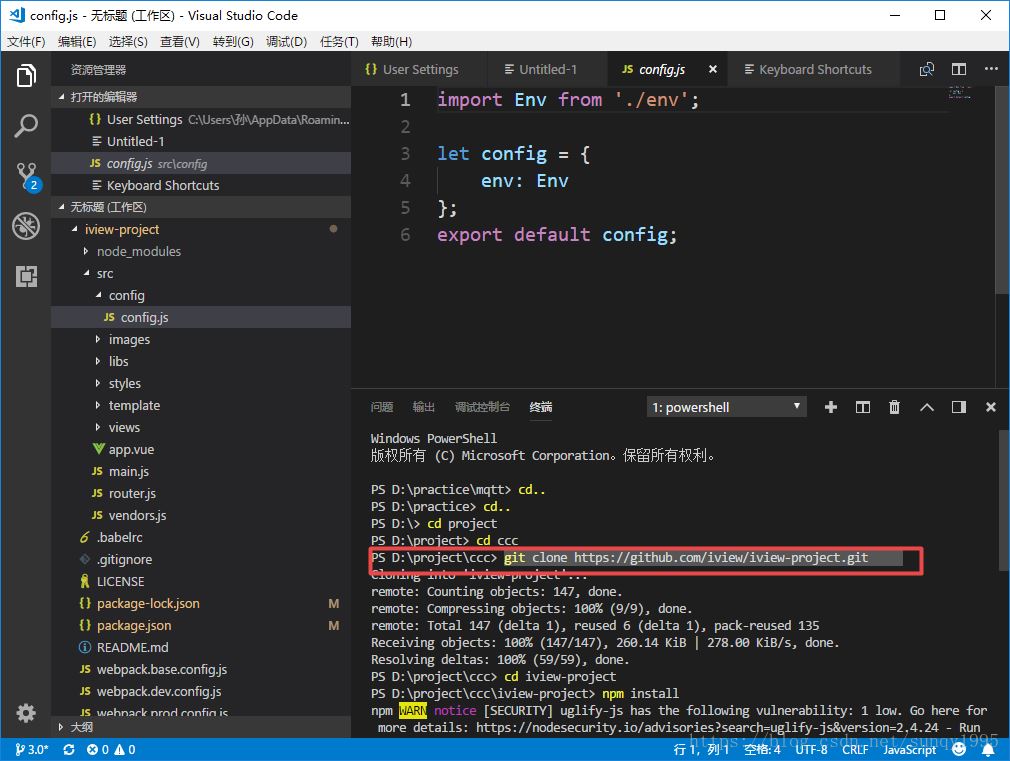 2. 在終端中cd到存放文件夾下面,然后git clone https://github.com/iview/iview-project.git就可以將項目拉取下來