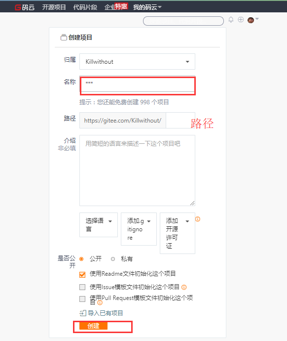 在一些代碼托管平臺創建項目,例如github或者開源中國社區,這里已開源中國社區為例;
