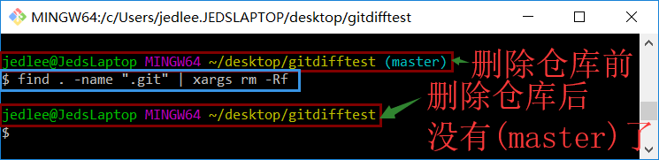 (2)方法2:在本地倉庫的目錄下調用命令行刪除根目錄下的.git文件夾,輸入