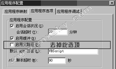 點擊“應用程序選項”標簽,將其中的“啟用父目錄”的鉤選符號去掉。點擊確定按鈕返回。