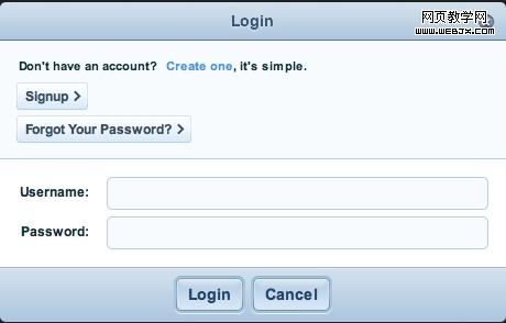 grooveshark (listen.grooveshark.com)整個站點(diǎn)的每一個頁面中,這個漂亮的登錄窗口都觸手可及。注意,點(diǎn)擊登錄( lodin> )按鈕后并不會載入一個新頁面,而是直接把注冊表單替換成了登錄表單(使用了滑動導(dǎo)航菜單效果)。非常方便,非常友好的用戶界面。我覺的這可以算是滑動導(dǎo)航菜單的變體使用。