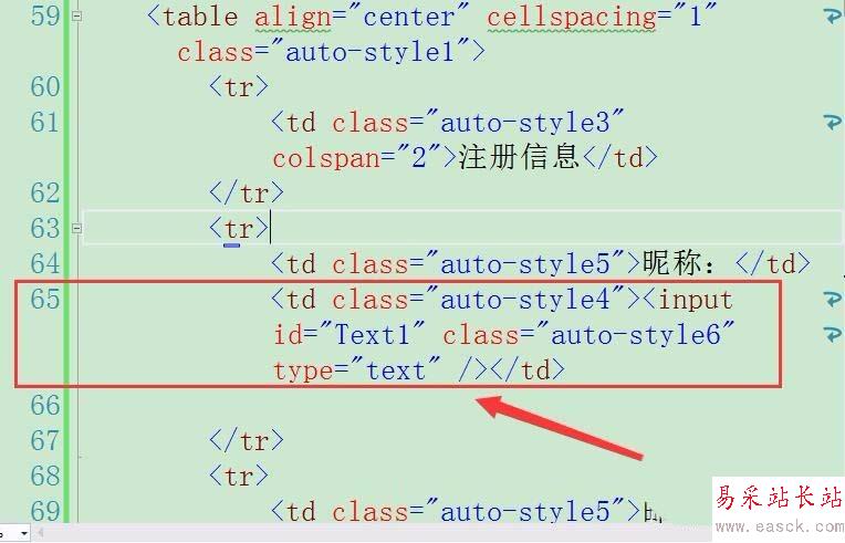 5、昵稱選項(xiàng)后的單元格中,用代碼繪制一個(gè)輸入文本框。
