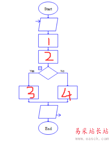 2、依次添加 輸入 選擇 賦值 賦值 輸出 符號,添加完后如圖所示。