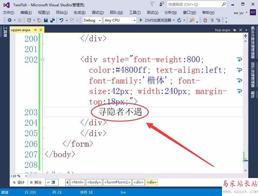 9、不要忘了在div標(biāo)簽中插入文本,本例為尋隱者不遇。