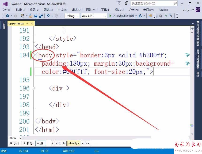 Visual Studio中想要定義網(wǎng)頁的布局格式,今天我們就來看看使用body標簽來定義布局的教程。