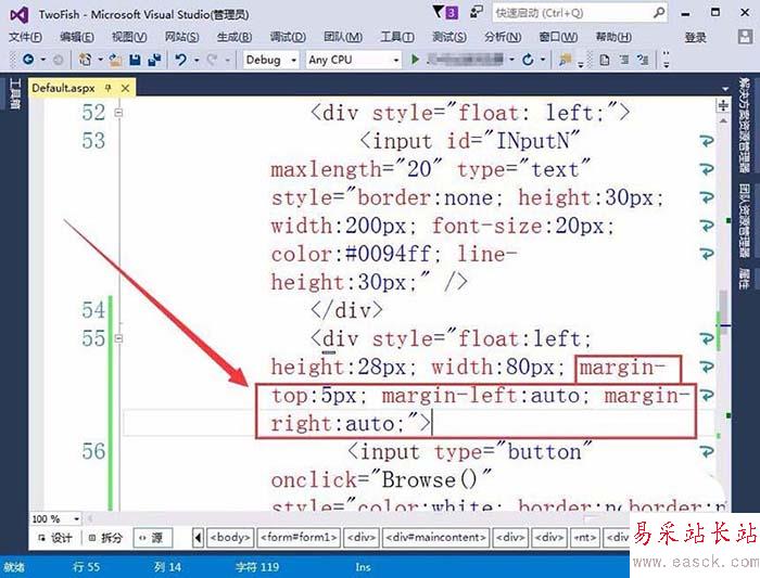1、打開Visual Studio,創(chuàng)建一個(gè)網(wǎng)站,并打開它的首頁Default.aspx。
