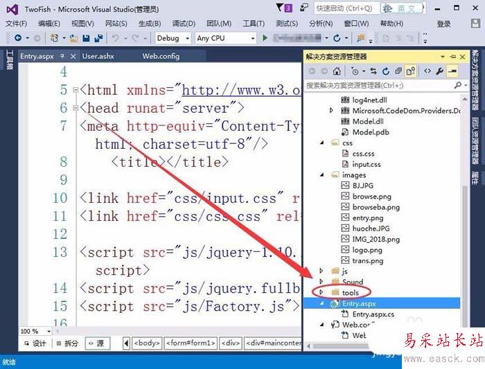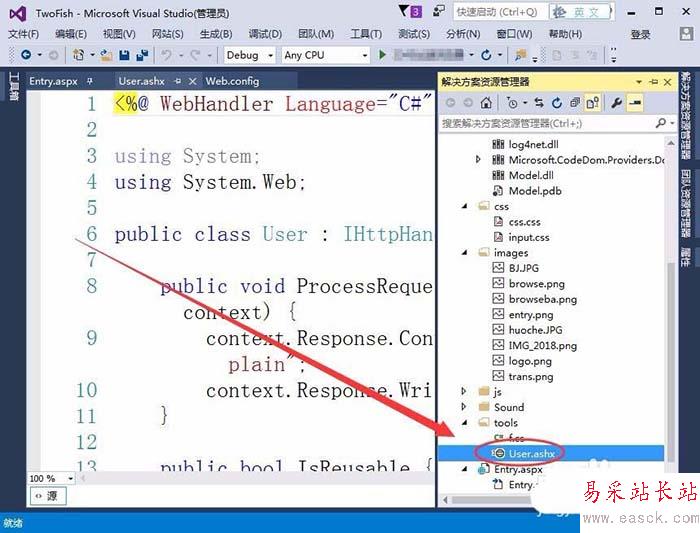 6、可以看到,在tools文件夾中,多了一個User.ashx文件,用戶文件就添加好了。