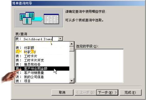 步驟三、進入“簡單查詢向?qū)А焙螅瑥膱D3所示的“表/查詢”下拉列表中選擇要查詢的表。