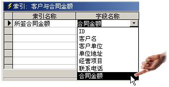 “索引名稱”僅是索引的標識,可以使用索引字段的名稱來命名,或使用具有某種含義的字符串。如,本例將建立“合同金額”索引,以便于以后按合同金額的大小排序來瀏覽數據記錄,所以給出了圖35中所示的索引名稱。
