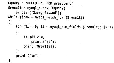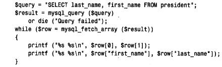 | mysql_ f e t c h _ r o w ( ) | 一個數組,由數字索引訪問其元素 |
