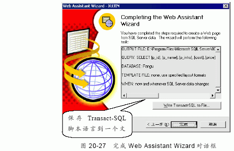 data from the transact-sql statement i specify: 使用自定義的查詢語句進行查詢; 圖20-12 定義web assistant 工作計劃對話框