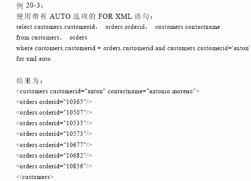 使用auto 模式時查詢結果集作為嵌套xml 元素。from 從句中的每一個表名作為xml 元素,在select 語句中的各列作為xml 文檔元素的屬性。如果使用elements 選項,則select 語句中的各列作為xml 文檔元素的子元素。