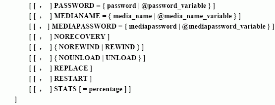 表示sql server 重新開始被中斷的備份操作,使用該選項(xiàng)可以節(jié)省時(shí)間,因?yàn)閭浞輰闹袛帱c(diǎn)接著進(jìn)行,而不是從頭開始。該選項(xiàng)僅適用于磁帶介質(zhì)且需要多卷磁帶。如果您正在使用第一卷磁帶,則該選項(xiàng)不可用。