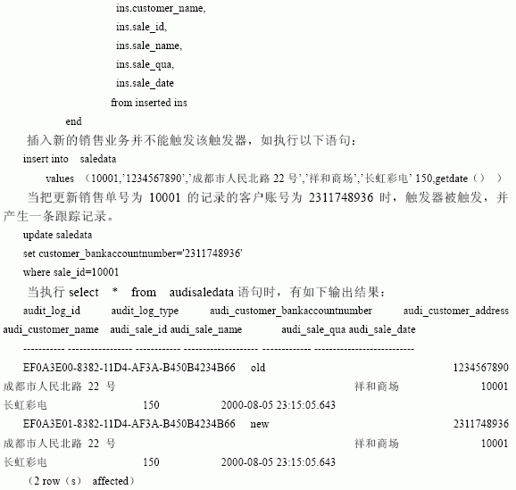 注意:必須刪除與sales表已建立的各主外鍵關系,上面的觸發(fā)器才能被觸發(fā)。