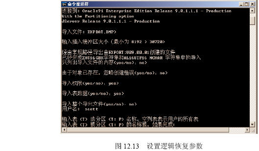 (3)出現如圖12.14所示界面表明利用imp命令文件成功完成邏輯恢復。