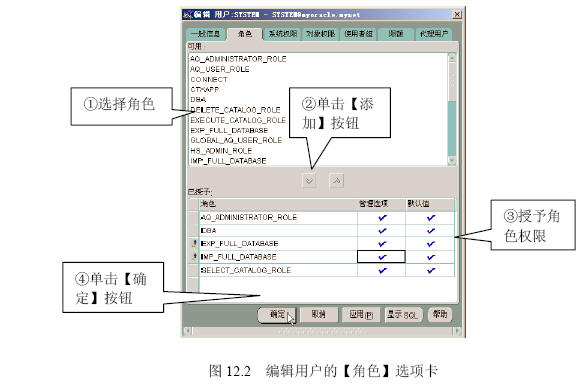 (1)如圖12.2所示的編輯用戶的【角色】選項卡。