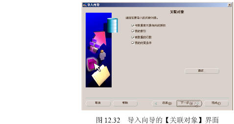 (8)出現如圖12.32所示的導入向導的【關聯對象】界面,用于設置要導入的關聯對象,包括。
