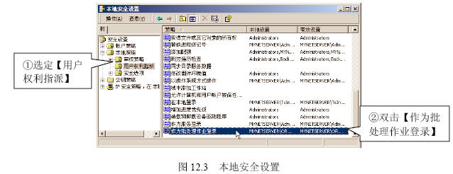 (2)出現如圖12.4所示的【本地安全策略設置】界面。