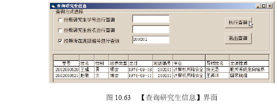 (11)出現如圖10.63所示的【查詢研究生信息】界面。