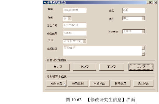 (10)出現如圖10.62所示的【修改研究生信息】界面。