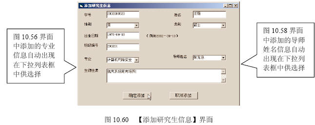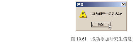 (9)成功添加研究生信息后出現如圖10.61所示界面,單擊“確定”按鈕。