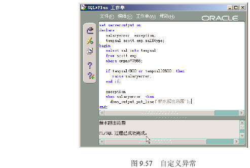 在【sqlplus worksheet】中執行下列pl/sql代碼,執行結果如圖9.57所示。