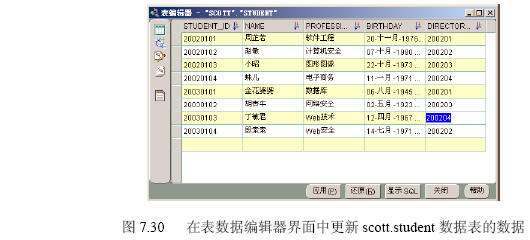 (1)在表數(shù)據(jù)編輯器中將研究生編號(hào)student_id為“20030103”的研究生的導(dǎo)師編號(hào)字段director更改為200204,如圖7.30所示。