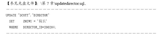 (6)在【sqlplus worksheet】中執(zhí)行下列語(yǔ)句,作用是一樣的。這是通過(guò)主碼director_id來(lái)定位記錄的。這樣的更新語(yǔ)句適合在不同的計(jì)算機(jī)環(huán)境上使用。