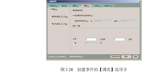 (4)圖5.26所示為創(chuàng)建事件的【調(diào)度】選項卡。