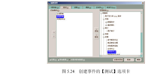 (3)圖5.24所示為創(chuàng)建事件的【測試】選項卡。