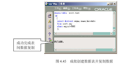(1)在【命令編輯區】輸入“select empno, ename, hiredate from scott.emp;”,然后單擊【執行】按鈕,出現如圖4.41所示的結果。因此,筆者的計算機系統默認的日期型數據格式應該為“日-月-年”。