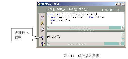 insert into scott.emp(empno,ename,hiredate) (select empno+100,ename,hiredate from scott.emp where empno>=6999 );