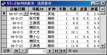 在這個表中顯示每個司機的運輸情況,共有425個記錄。