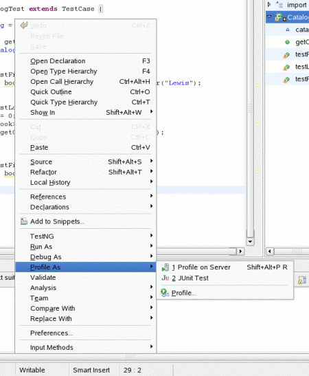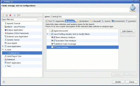您可以直接從這個窗口運行分析工具,也可以使用位于要分析的測試類上的上下文菜單,方法是選擇profile as菜單項(參見圖4)。