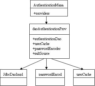 <bean id=”jdbcdaoimpl” class=”org.acegisecurity. roviders. dao.jdbc.jdbcdaoimpl”>