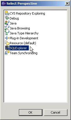 在 select perspective框中,選擇sqlexplorer視窗,如圖3所示。通過選擇sqlexplorer視窗,sqlexplorer插件的功能部件在eclipse中變得可用。