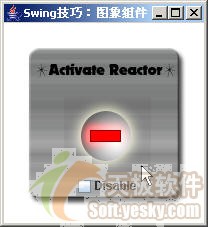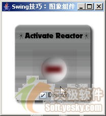 現在背景的繪制工作已經完成了。接下來要將重點轉移到標簽"activate reactor"的制作上了。這里僅僅是將一個靜態的圖像放置在背景的合適位置上。我們當然可以使用另外一個imagepanel實例來實現這部分功能,但是由于"activate reactor"這個幾個文字實際上僅僅是一個標簽,所以我們創建了另外一個子類imagelabel,參考下面的代碼示例: