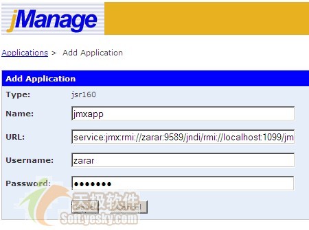 下載和安裝jmanage。一旦安裝了,使用jmanage的web接口來創建一個jsr 160應用程序-通過使用主頁中的"添加新應用程序"鏈接。"添加應用程序"頁面顯示在圖3中: