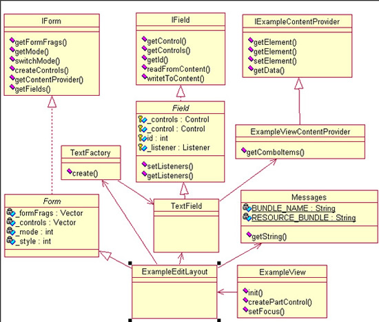 public void createpartcontrol(composite parent) { exampleeditlayout _layout = new exampleeditlayout(parent,swt.none,fieldmode.read,new exampleviewcontentprovider()); } public void createcontrols(int style) { griddata griddata; text textfld, subjectfld; control tolabel, cclabel, bcclabel; control fromdatetime; control control; button durationtext; button submit; gridlayout layout = new gridlayout(2, false); layout.marginwidth = 0; layout.marginheight = 4; setlayout(layout); //label griddata = new griddata(griddata.horizontal_align_fill | griddata.vertical_align_center); griddata.horizontalindent = 10; labelfactory.create(this, messages.getstring("exampleeditlayout.title"), griddata); //$non-nls-1$ griddata = new griddata(griddata.horizontal_align_fill | griddata.vertical_align_center); griddata.horizontalindent = 40; labelfactory.create(this, "", griddata); //text griddata = new griddata(griddata.horizontal_align_fill | griddata.vertical_align_center); griddata.horizontalindent = 10; control = labelfactory.create(this, messages.getstring("exampleeditlayout.email"), griddata); //$non-nls-1$ griddata = new griddata(griddata.horizontal_align_beginning | griddata.vertical_align_center); griddata.horizontalindent = 10; control = textfactory.create(this, swt.border | swt.v_scroll | swt.wrap, griddata, fieldmode.edit); //$non-nls-1$ addfield(new textfield(control, exampleviewcontentprovider.first_index)); //combo griddata = new griddata(griddata.horizontal_align_fill | griddata.vertical_align_center); griddata.horizontalindent = 10; labelfactory.create(this, messages.getstring("exampleeditlayout.group"), griddata); //$non-nls-1$ griddata = new griddata(griddata.horizontal_align_beginning | griddata.vertical_align_center); griddata.horizontalindent = 40; control = combofactory.create(this, fieldmode.edit, false, griddata); //$non-nls-1$ addfield(new combofield(control, exampleviewcontentprovider.second_index)); ...} public class textfield extends field { /** * @param control * @param id */ public textfield(control control, int id) { super(control, id); } /* based on the id of the widget, values retrieved from * the content provider are set. */ public void readfromcontent(iexamplecontentprovider content) { string newtext = (string )content.getelement(getid()); if (newtext != null) ((text )_control).settext(newtext); } /* based on the id of the widget, values retrieved from widget are * sent back to the content provider. */ public void writetocontent(iexamplecontentprovider content) { string newtext = ((text )_control).gettext(); content.setelement(getid(), newtext); } } public object getelement(int iindex) { switch (iindex) { case first_index: return "[email protected]"; case second_index : return new integer(1); case fourth_index : return new boolean(true); case third_index: return new boolean(false); case fifth_index: return new boolean(false); } return null; } public form (composite parent, int style, fieldmode mode, exampleviewcontentprovider content) { super(parent, style); _content = content; _style = style; setmode(mode); init(style); } private void init(int style) { createcontrols(style); controlscreated(); } protected void controlscreated() { readfromcontent(); } 新聞熱點(diǎn)