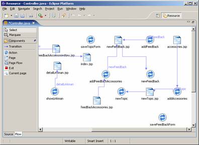 parameter="topics.controller" scope="request" validate="true"> <forward name="newtopic" path="/newtopic.jsp"/> <!--forward "addtopicaccessories" (validationerrorforward)--> <forward name="addtopicaccessories" path="/accessories.jsp"/></action> …… <message-resources key="_defaultvalidationmessages" parameter="org.apache.beehive.netui.pageflow.validation.defaultmessages" null="true"/></struts-config>由于篇幅所限,無法詳細闡述pollinate的使用,讀者可以參考相關文章:用pollinate可視化開發頁面流(jpf) http://dev2dev.bea.com.cn/techdoc/200504503.html