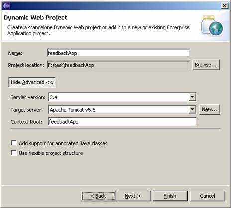 選擇next按鈕,在project name中輸入項目名稱:feedback,點擊next,