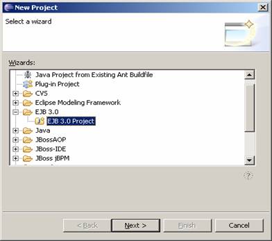 首先使用jboss ide,創建一個ejb3.0項目,選擇new->project->ejb3.0 project,