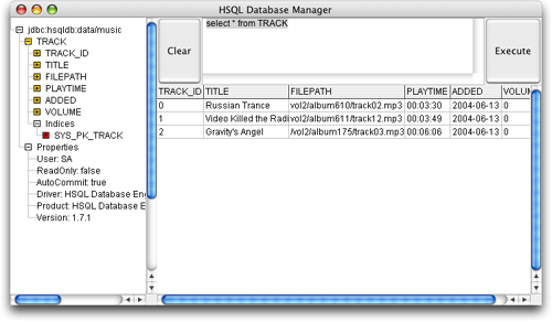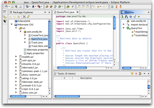 public static void main(string[] args) throws hibernateexception { // load the configuration file and get a session _rootdao.initialize(); // print the tracks that fit in five minutes list tracks = trackdao.gettracksnolongerthan(time.valueof("00:05:00")); for (listiterator iter = tracks.listiterator() ; iter.hasnext() ; ) { track atrack = (track)iter.next(); system.out.println("track: /"" + atrack.gettitle() + "/", " + atrack.getplaytime()); } }顯然,這是一種在使用hibernate synchronizer時處理指定查詢的方法。做一次快速測試就可以確認它生成同樣的輸出,而且它的代碼也要好很多。
