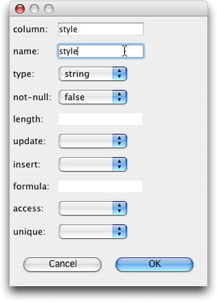 盡管我的第一印象是所有內容都來自映射文檔,但是hibernate synchronizer目前不支持從映射文檔創建或更新數據庫模式。支持論壇上已經提出了相關的請求,所以如果將來看到這些特性,我肯定不會吃驚,因為提供這類支持并不很困難。目前來說,如果要從映射文檔開發數據庫,就必須使用像hibernate: a developer's notebook書中這種ant驅動之類的方法。此外,下面描述的hibernator插件支持在eclipse中進行模式更新。我可能要研究一下是否可以同時安裝這兩種插件。