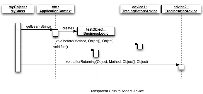 圖1.沒有對businesslogic bean應用方面時的順序圖
