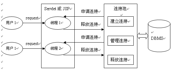 對于共享資源,有一個很著名的設計模式:資源池(resource pool)。該模式正是為了解決資源的頻繁分配﹑釋放所造成的問題。為解決上述問題,可以采用數據庫連接池技術。數據庫連接池的基本思想就是為數據庫連接建立一個“緩沖池”。預先在緩沖池中放入一定數量的連接,當需要建立數據庫連接時,只需從“緩沖池”中取出一個,使用完畢之后再放回去。我們可以通過設定連接池最大連接數來防止系統無盡的與數據庫連接。更為重要的是我們可以通過連接池的管理機制監視數據庫的連接的數量﹑使用情況,為系統開發﹑測試及性能調整提供依據。連接池的基本工作原理見下圖2。
