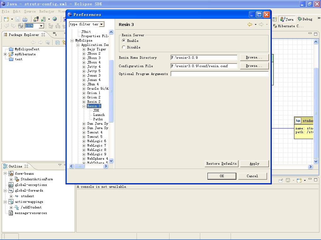 在application servers中我用的是resin3.0.9,路徑都是我計算機中的值。這樣,環境就可以了。