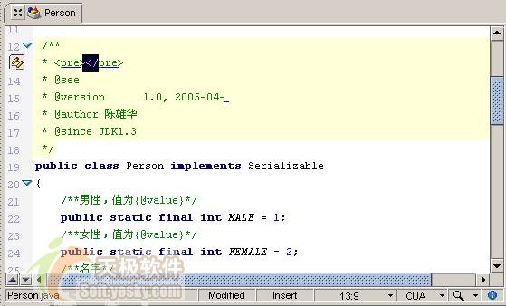 | 1. /** 2. * <pre>|</pre> 3. * @see 4. * @version $version, 2005-04-| 5. * @author $author 6. * @since jdk1.3 7. */ |