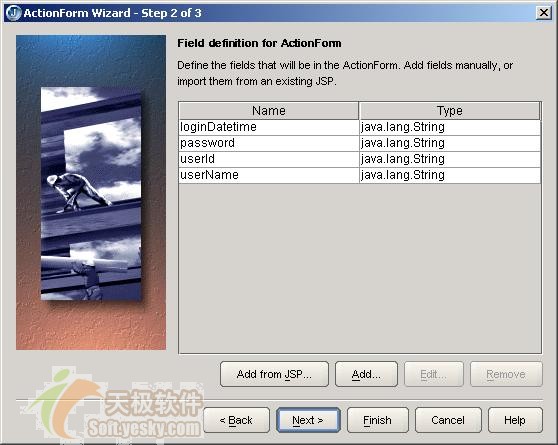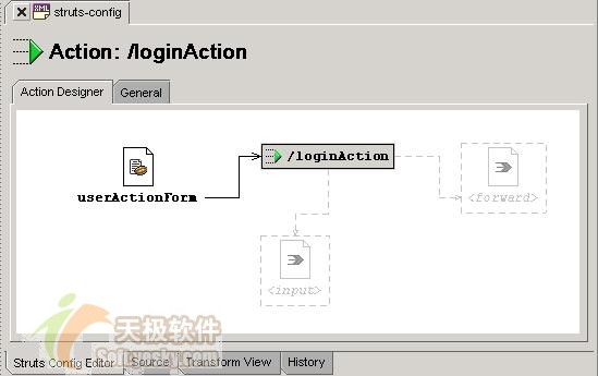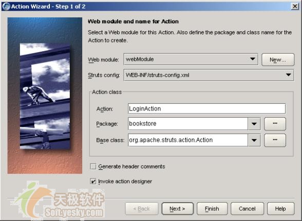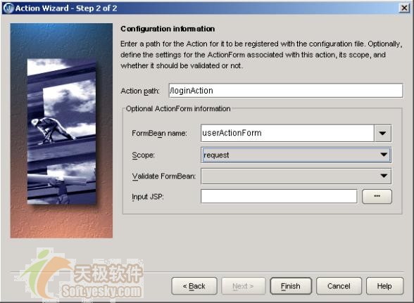 file->new...->web->在web頁中雙擊actionform圖標,彈出如圖 6所示的對話框: