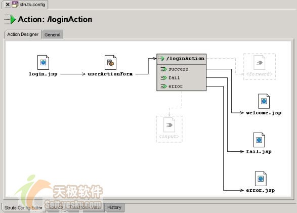 在這節里,我們就來創建一個名為loginaction的action,讓其完美的接替switch.jsp的工作。